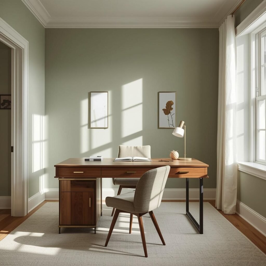 Muted greens like sage or eucalyptus help create calm and productive environments.