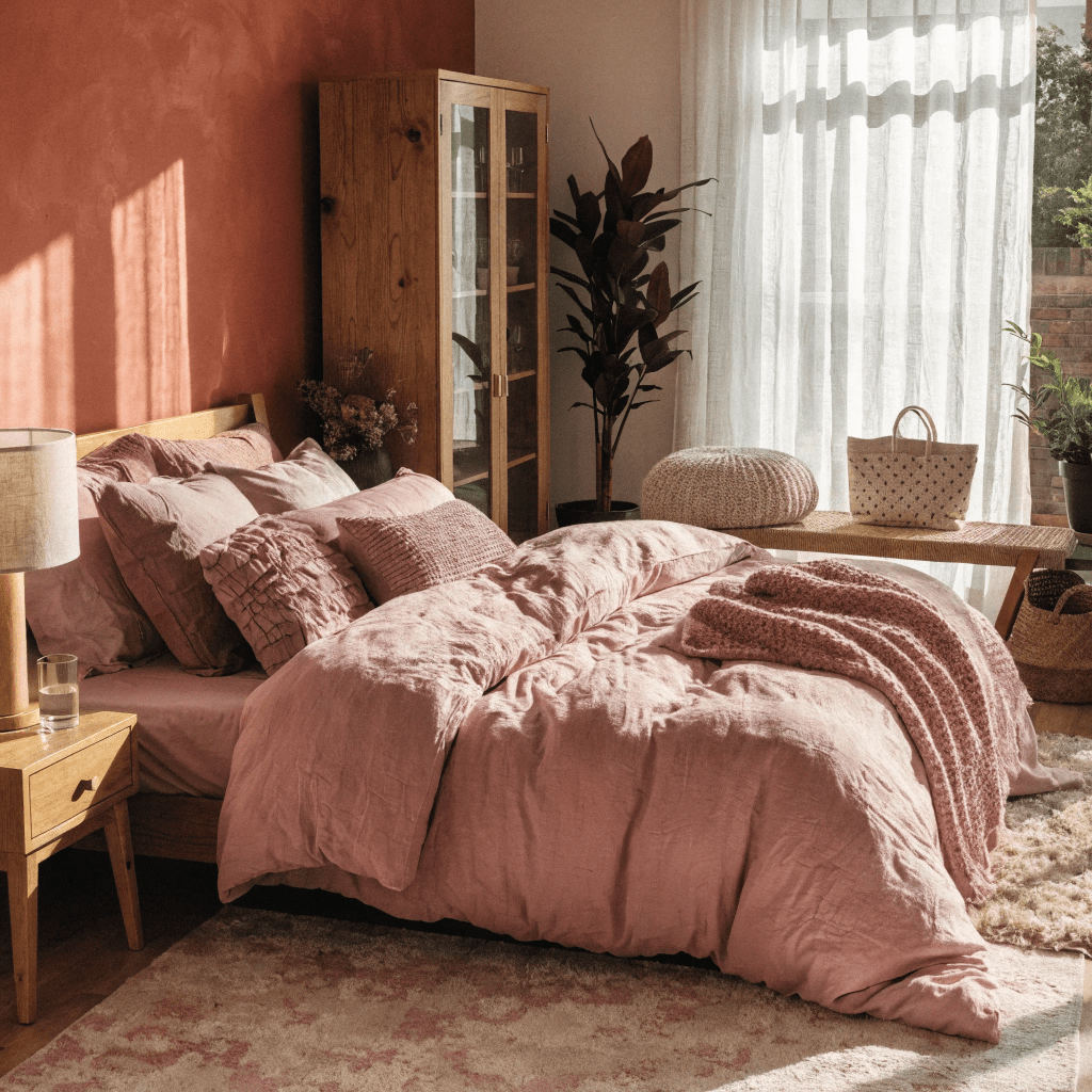 Beige tones soften terracotta and create a calm, relaxing environment ideal for restful spaces.