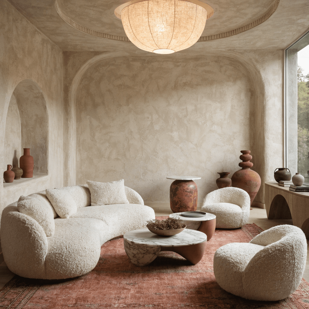 Cream tones soften the intensity of clay colors and create a balanced, relaxed atmosphere that feels both modern and timeless.