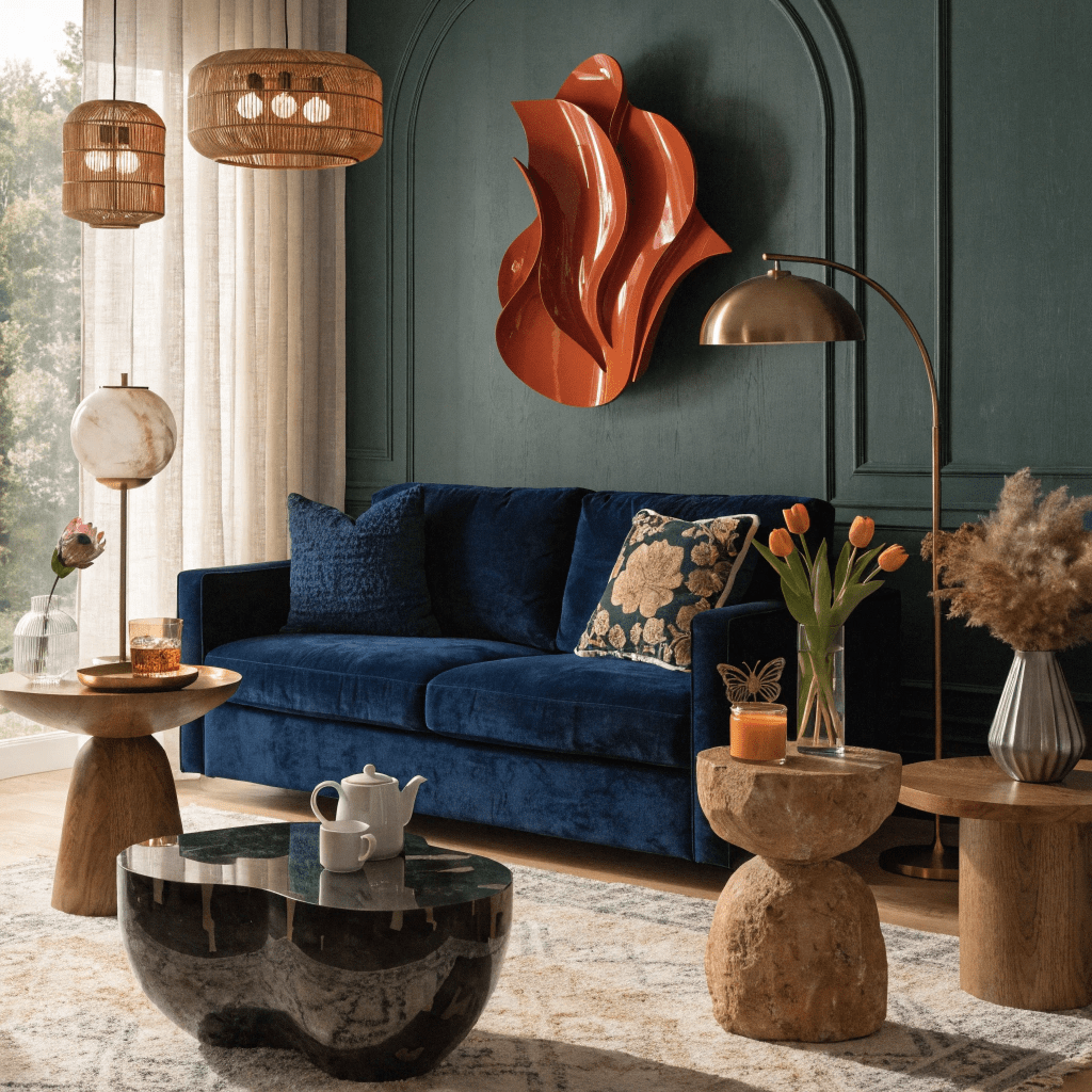 By choosing the right complementary colors and natural materials, you can create interiors that feel both modern and deeply comforting.