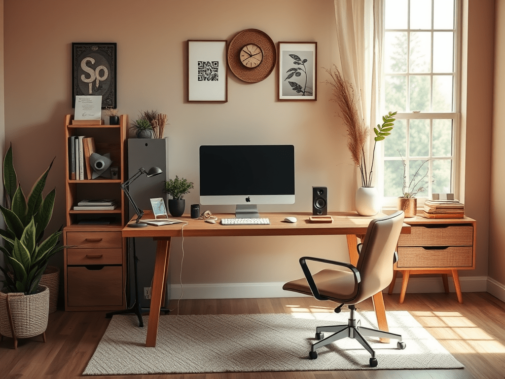 Stick with calming tones like beige, light wood, and muted green. These colors help maintain focus while keeping the space comfortable.